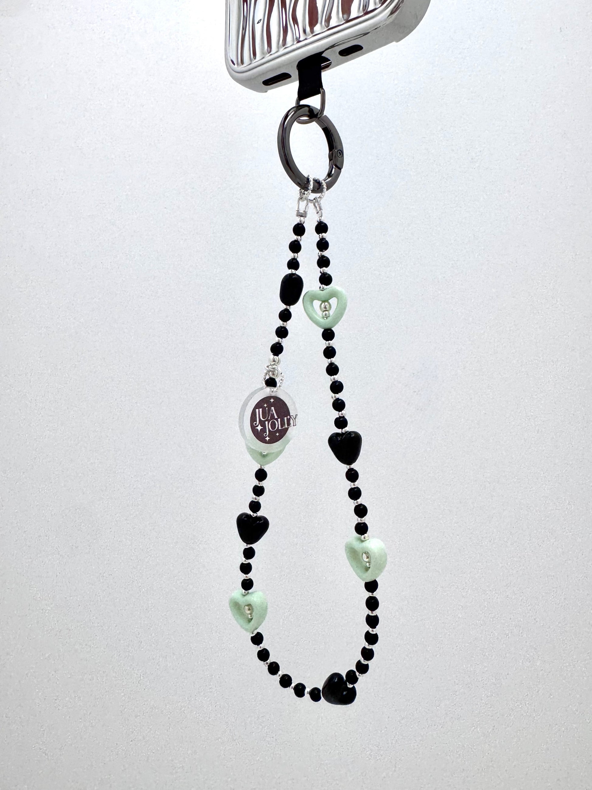Black beads for that classic vibe, plus a pop of minty-cool heart, which brings a bit cool and calm.